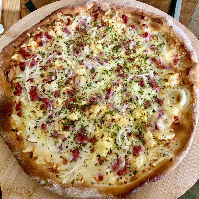 Hochwertiges Pizzamehl, Süd-Tiroler Käse, Salami & Schinkenspeck.
